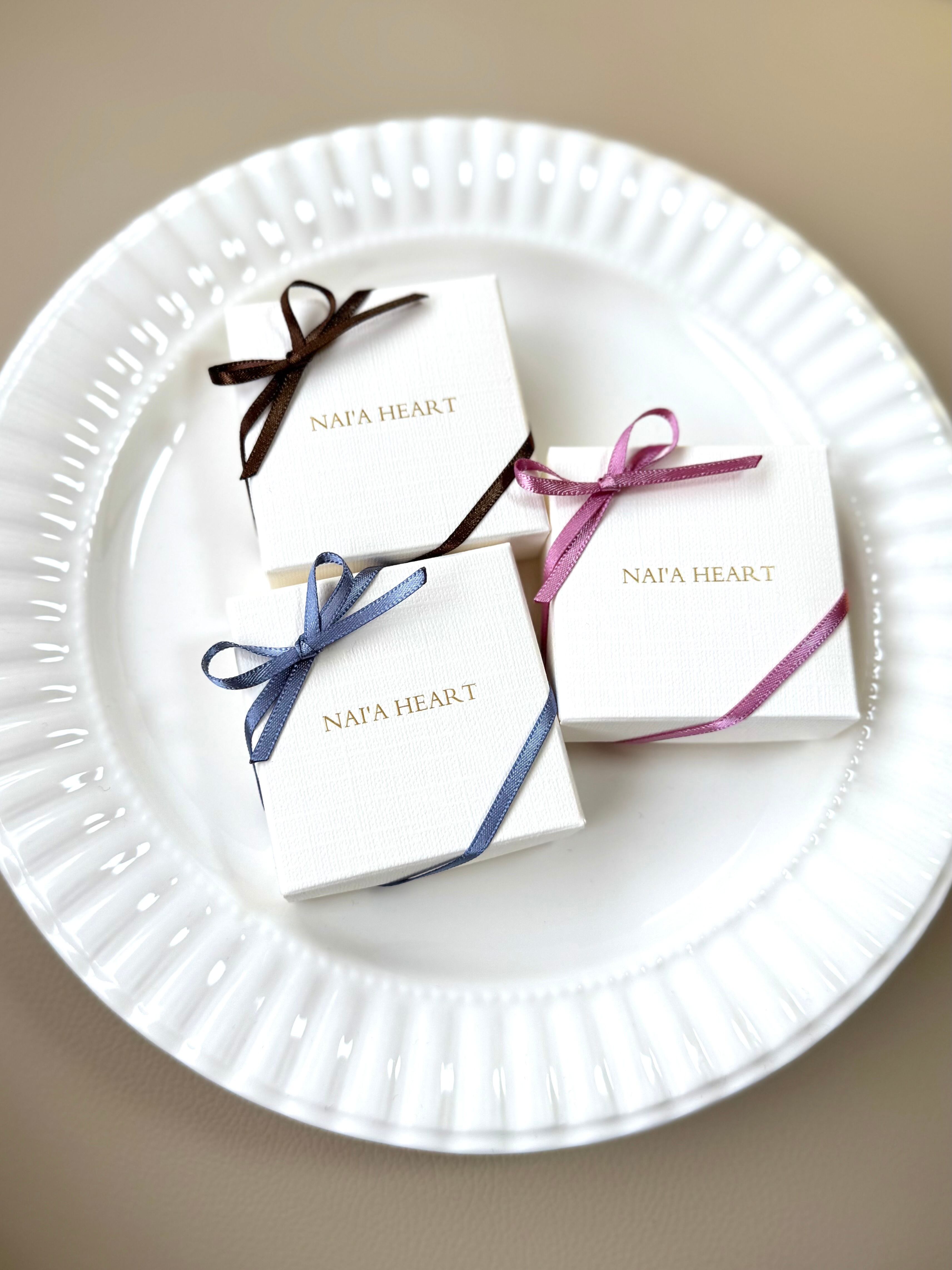 ナチュラルな色合いと可愛らしいデザインは、どんなお洋服にも合わせやすく、日常使いはもちろん、特別な日にも大活躍するアイテムです。リボンの色は3色からお選びいただけます。